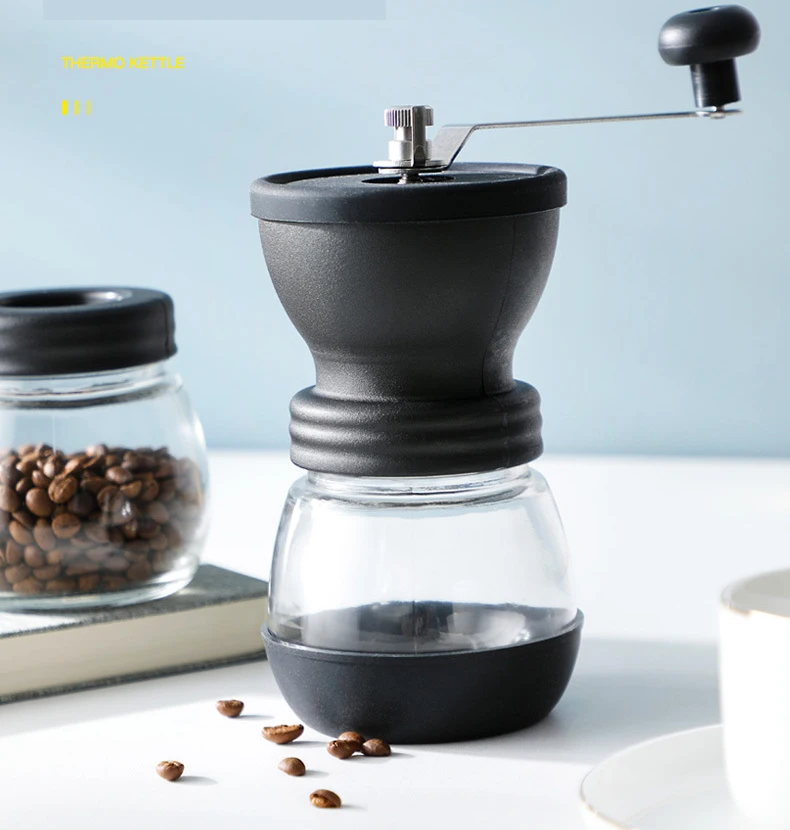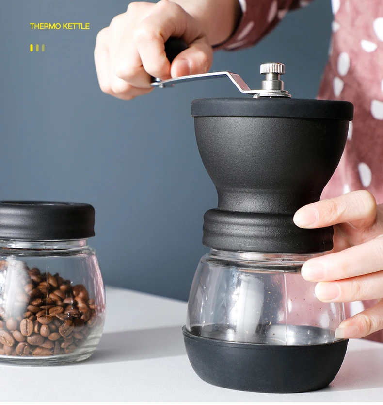 Dois recipientes de vidro transparentes e com tampa, encaixam com o moedor e funcionam para armazenar café que você moeu, porém não utilizou na hora.